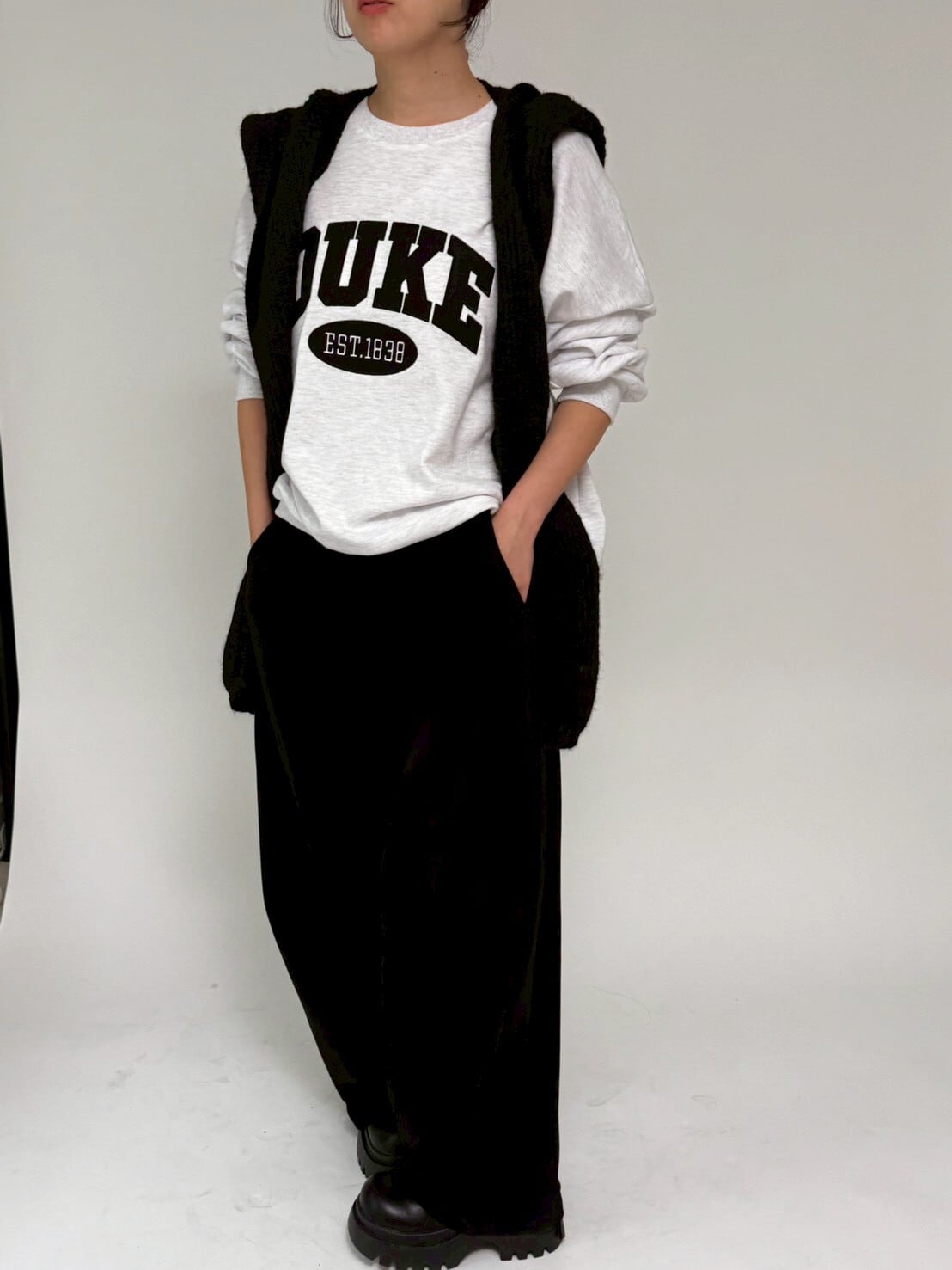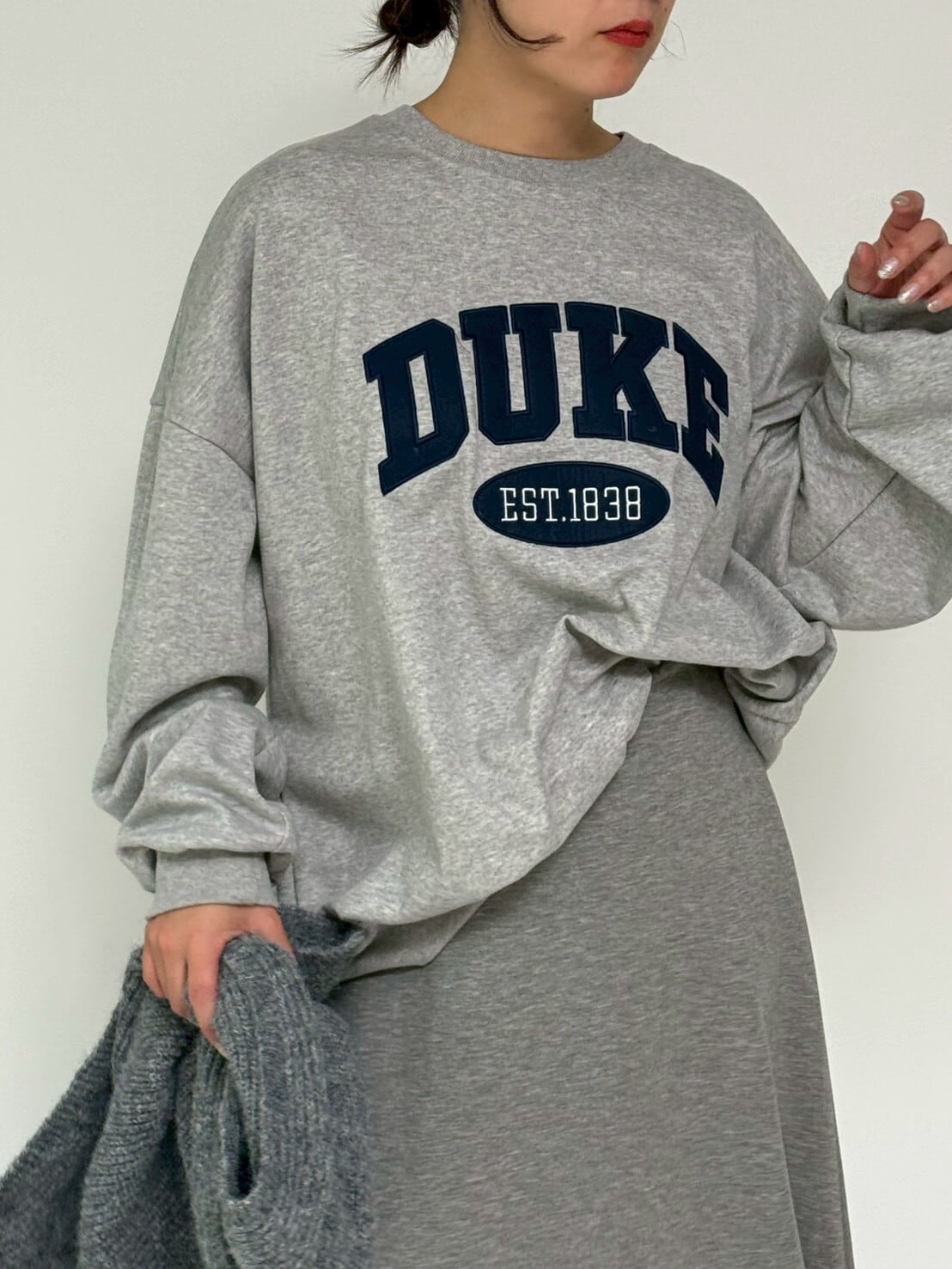 このスウェットは、DUKEロゴが特徴です。オートミール、グレー、ブラックの3色展開です。